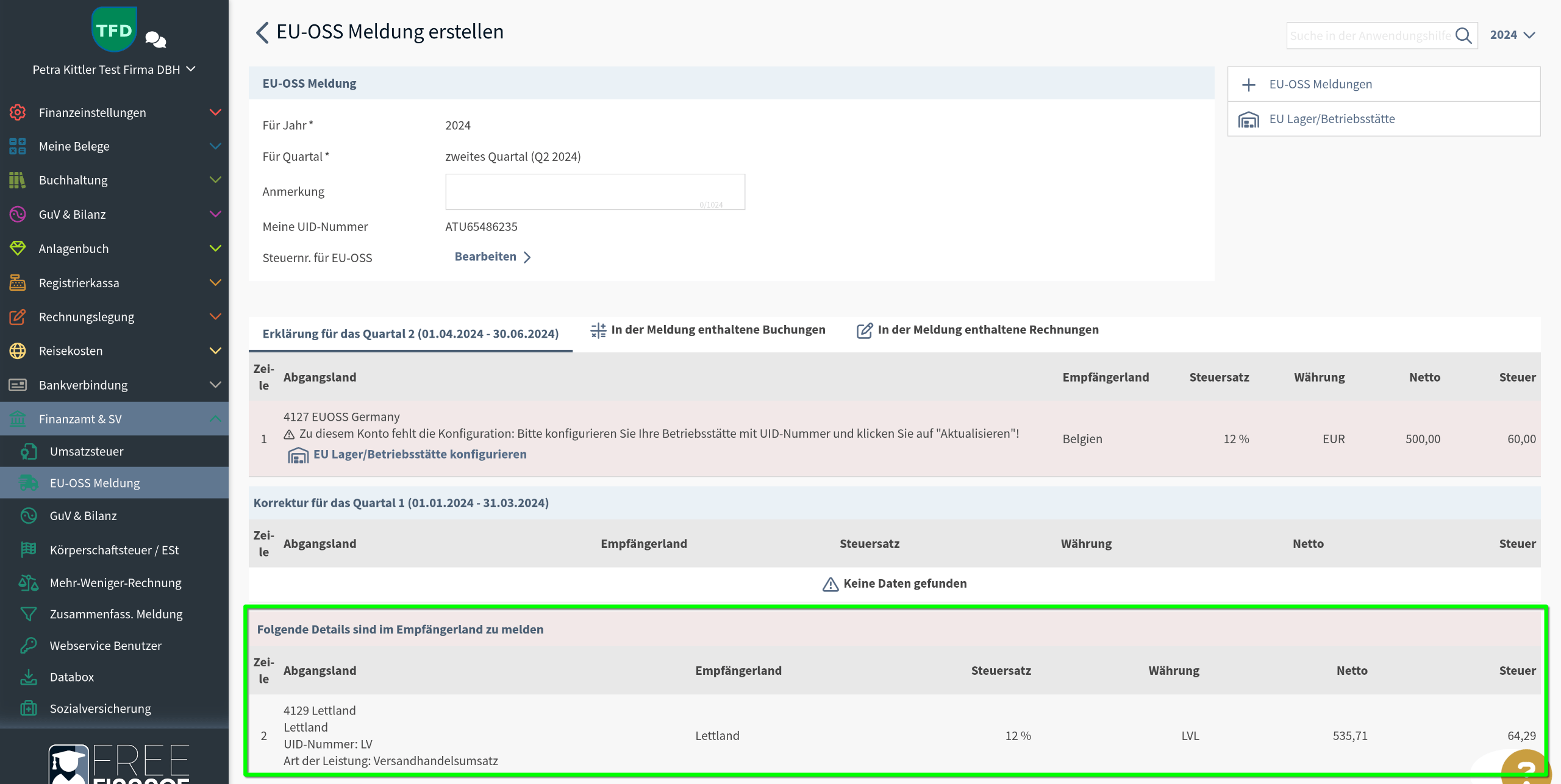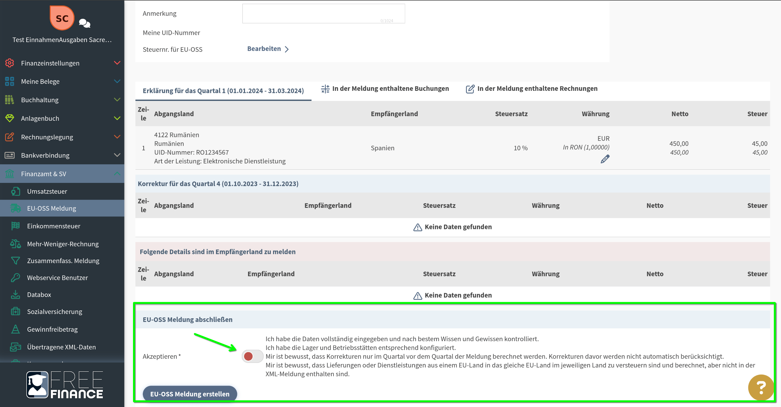 Bei FreeFinance werden diese Umsätze zwar in einer eigenen Tabelle in den EU-OSS-Details aufgeschlüsselt, sind aber nicht in der XML-Datei enthalten.