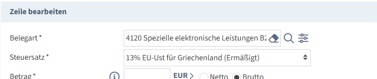 - Belegart 4122: Spezielle elektronische Leistungen B2C mit Steuernummer im EU-Ausland (EU OSS-OneStopShop Art 25a UStG)