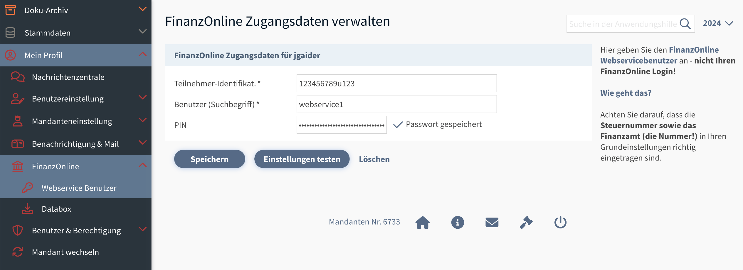 - Unter Umständen dauert das Aktivieren dieses Webservice-Benutzers in FinanzOnline!