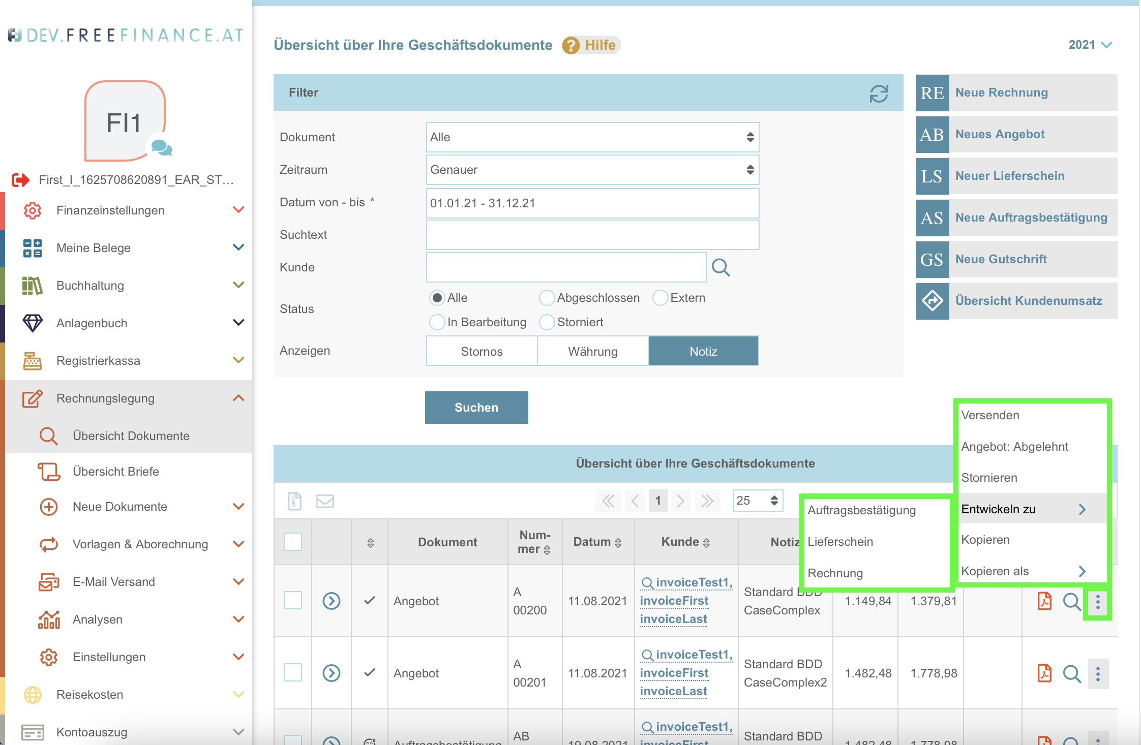 - Rechnung erstellen: aus einem Angebot, einer Auftragsbestätigung oder einem Lieferschein eine neue Rechnung erstellen