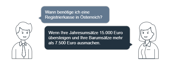 In Österreich benötigen Sie als Unternehmer eine Registrierkasse, wenn Ihre Jahresumsätze 15.000 Euro übersteigen und Ihre Barumsätze mehr als 7.500 Euro ausmachen: