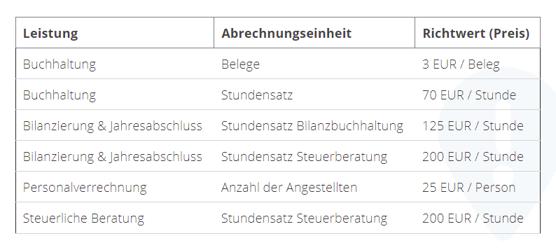 Es gibt aber Preisrahmen und Richtwerte, je nach Umfang des Unternehmens und der benötigten Dienstleistung, an denen Sie sich orientieren können - mehr dazu finden Sie hier: